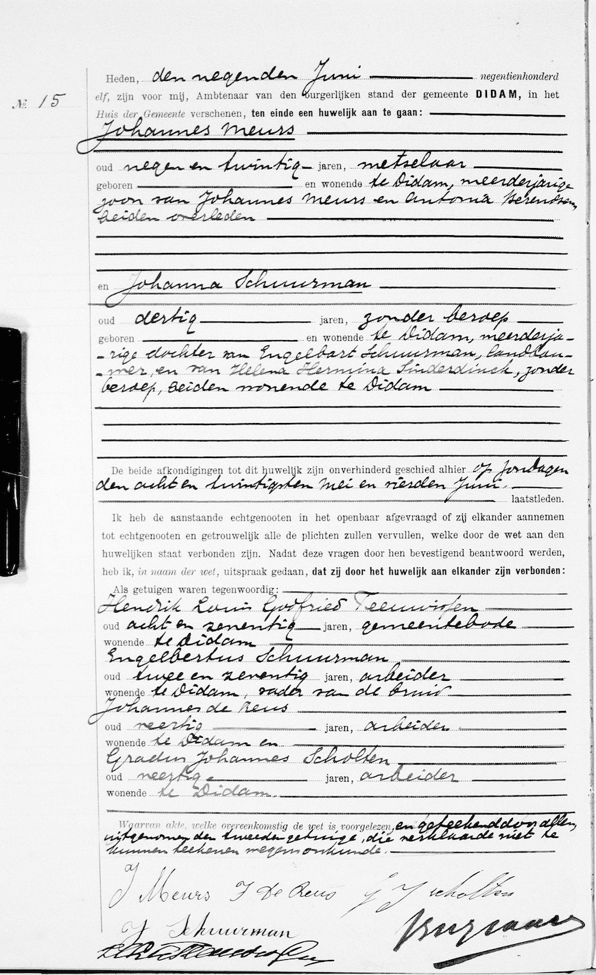 Didam huw. 09-06-1911 Johannes Meurs en Johanna Schuurman_