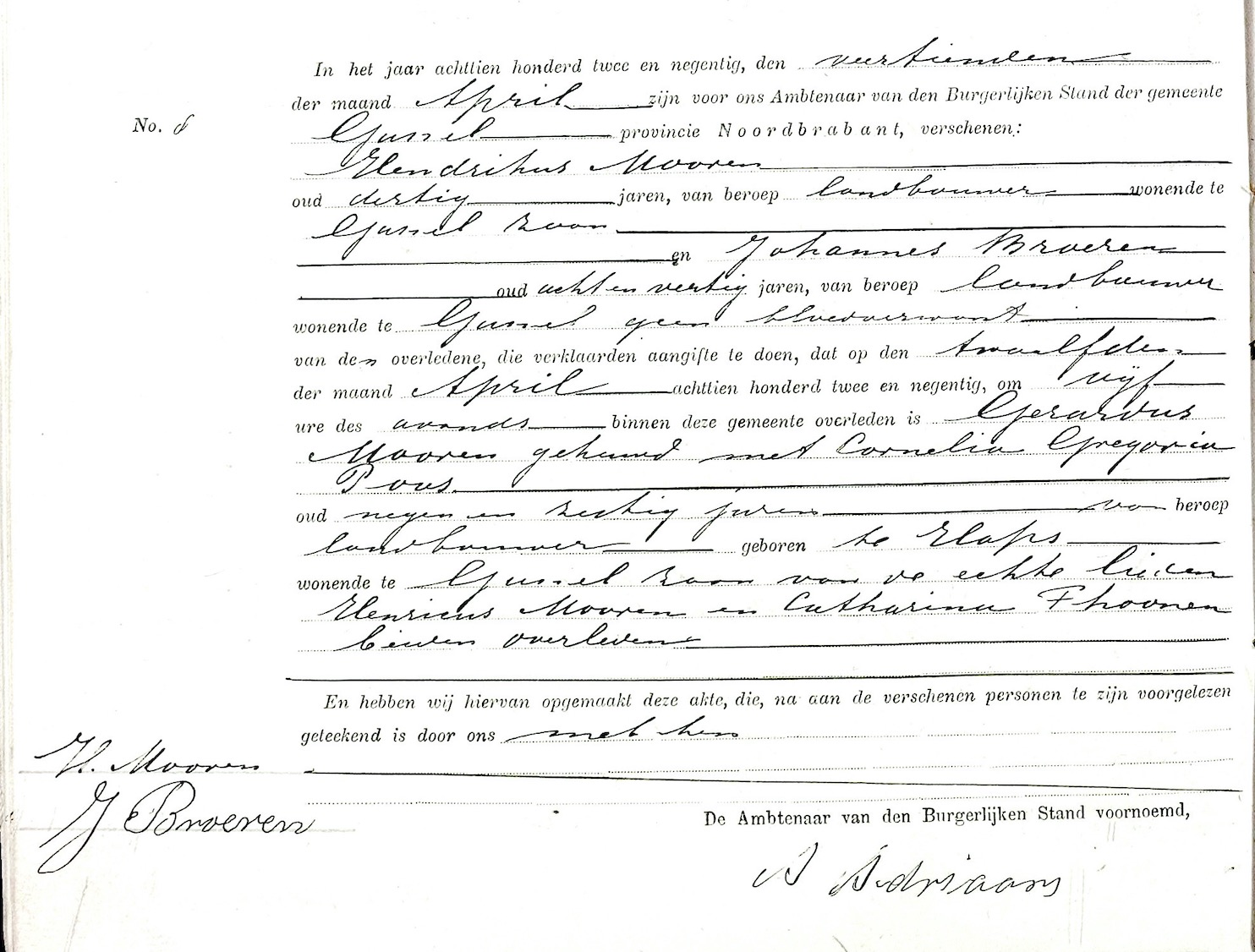 Gerardus Mooren overlijden