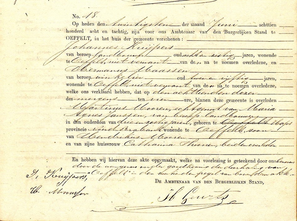 BHIC, ovl. reg. Oeffelt 1888, akte 18