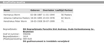 Johanna Catharina Peeters begraven