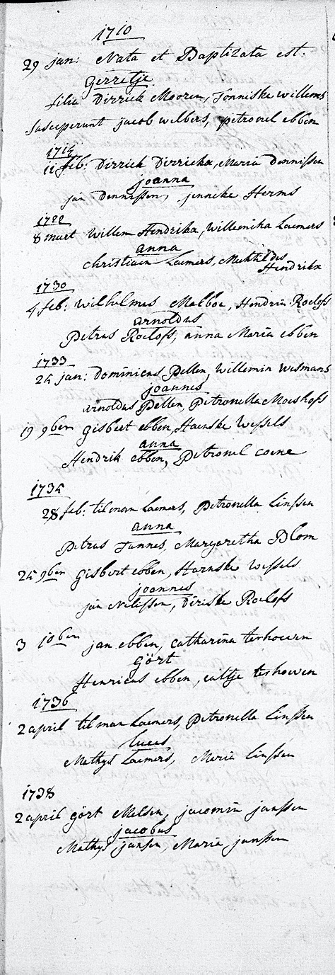 Fam. search. Ottersum, Lambertus: DHO reg. 1710-1798, inv.102.1 pag. 1