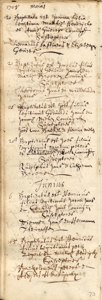 BHIC, DTB Cuijk RK doopb. 1695-1729 inv. nr. 14 Folio/pag 73-04