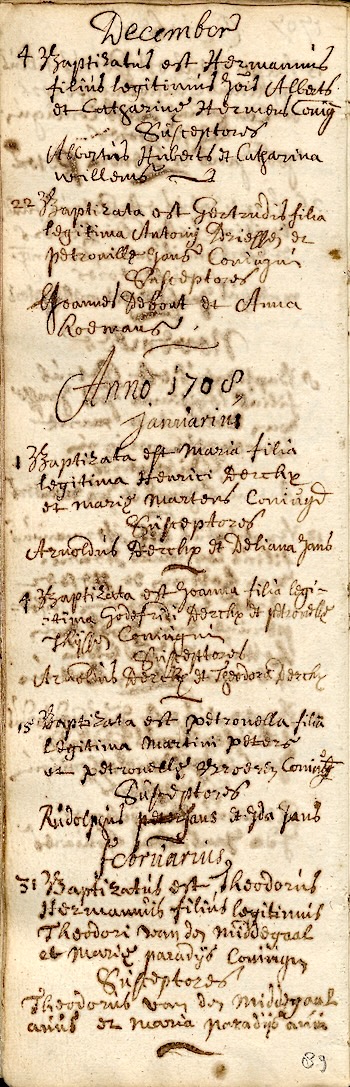 BHIC, DTB Cuijk RK doopb. 1695-1729 inv. nr. 14 Folio/pag 89-05