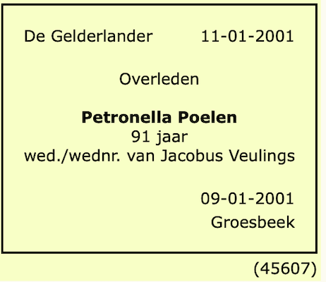 Petronella Poelen overlijden