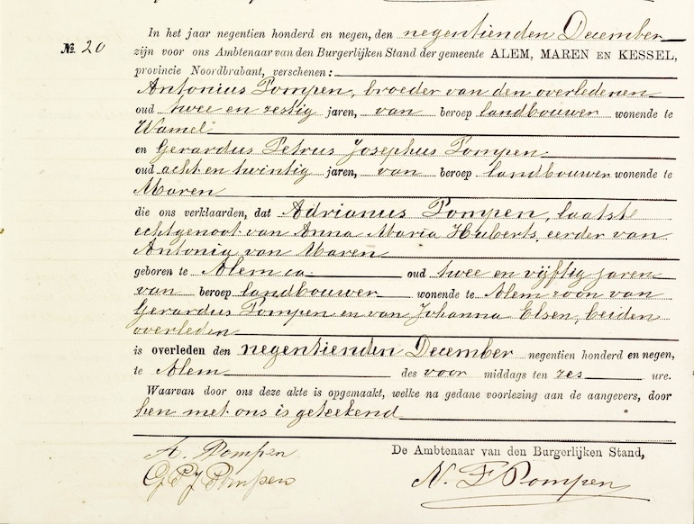 BHIC, overl. reg. Alem, Maren en Kessel 1909, akte 20