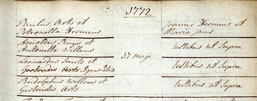 Cuijk huw. 17-05-1772 Rudolphus Willems - Gertrudis Arnoldissen