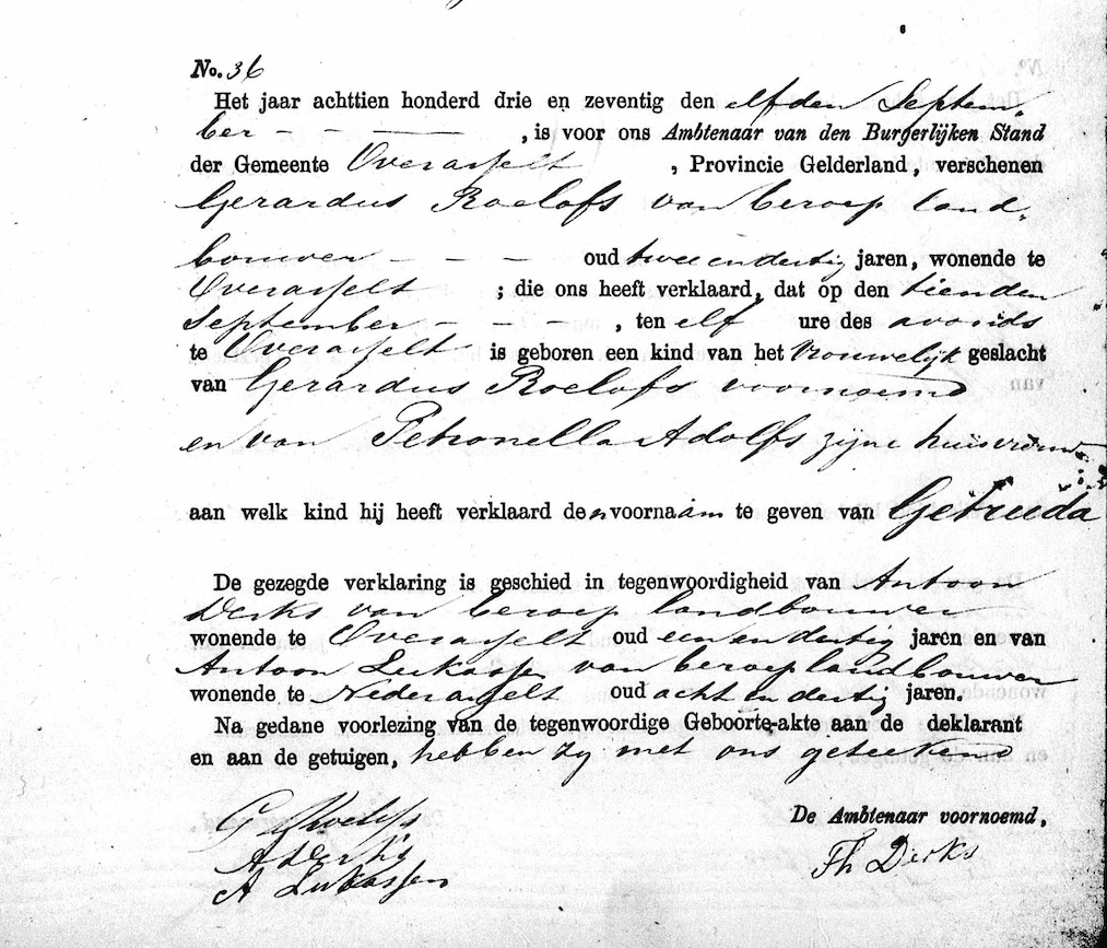 Getruda Roelofs geboorte