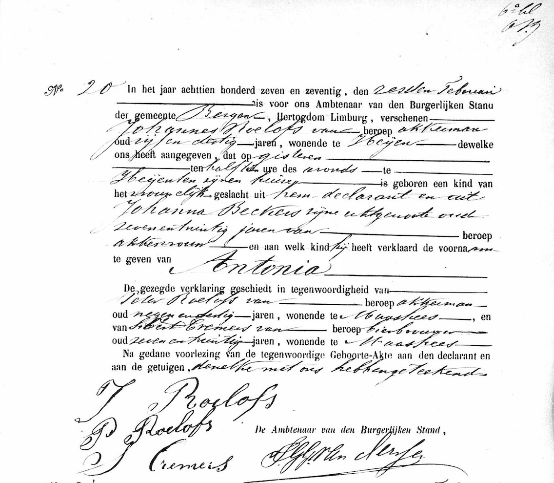 Antonia Roelofs geboorte