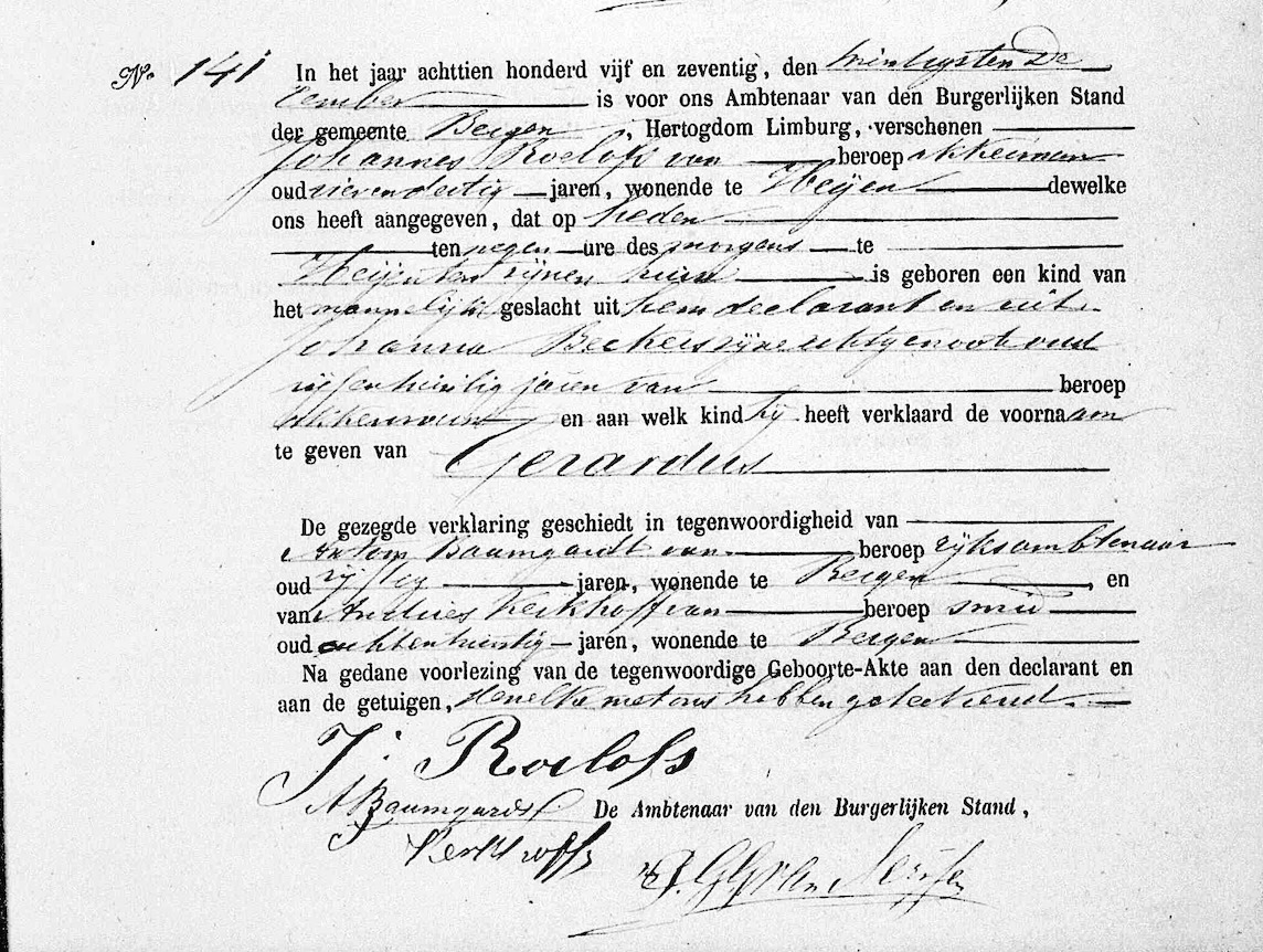 RHCL, geb. reg. Bergen (L) 1875, akte 141