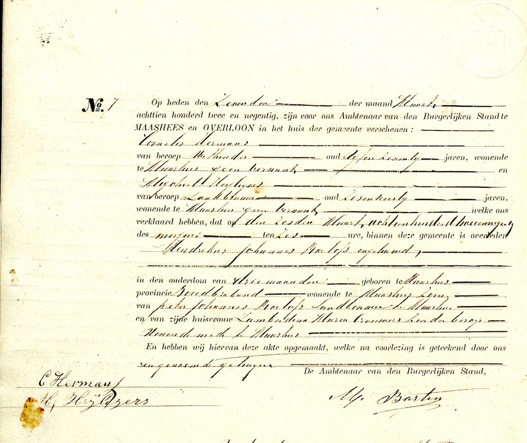BHIC, ovl. reg. Maashees en Overloon 1892, akte 7