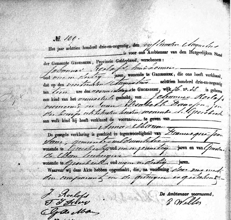 GeLdA, geb. reg. Groesbeek 1893, akte 109