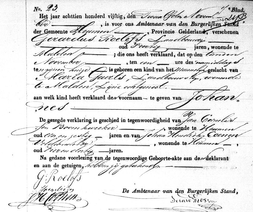 Geb. akte 12-11-1850 no 23 Johannes Roelofs