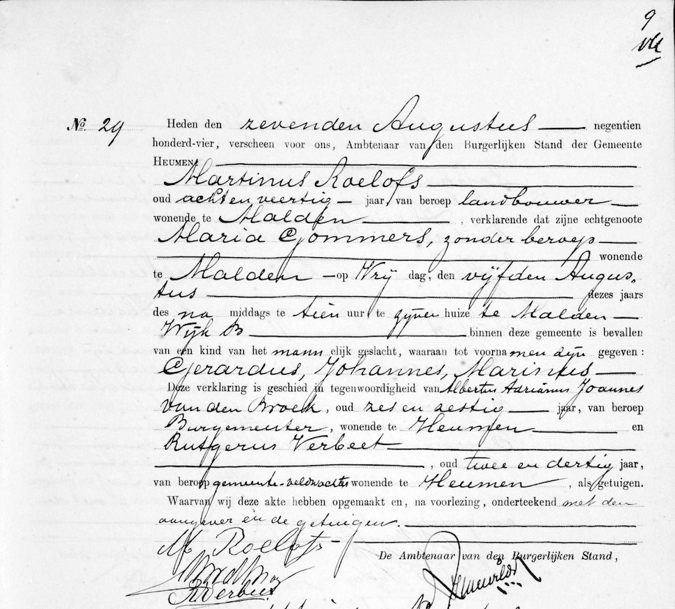 WWW, geb. reg. Heumen 1904, akte 29