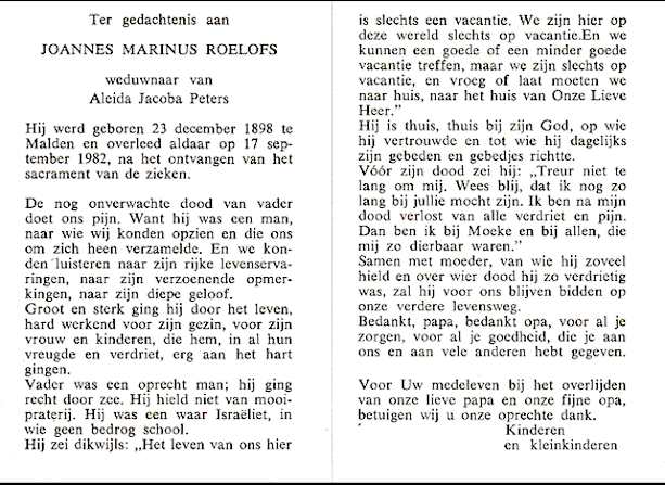 Johannes Marinus Roelofs overlijden