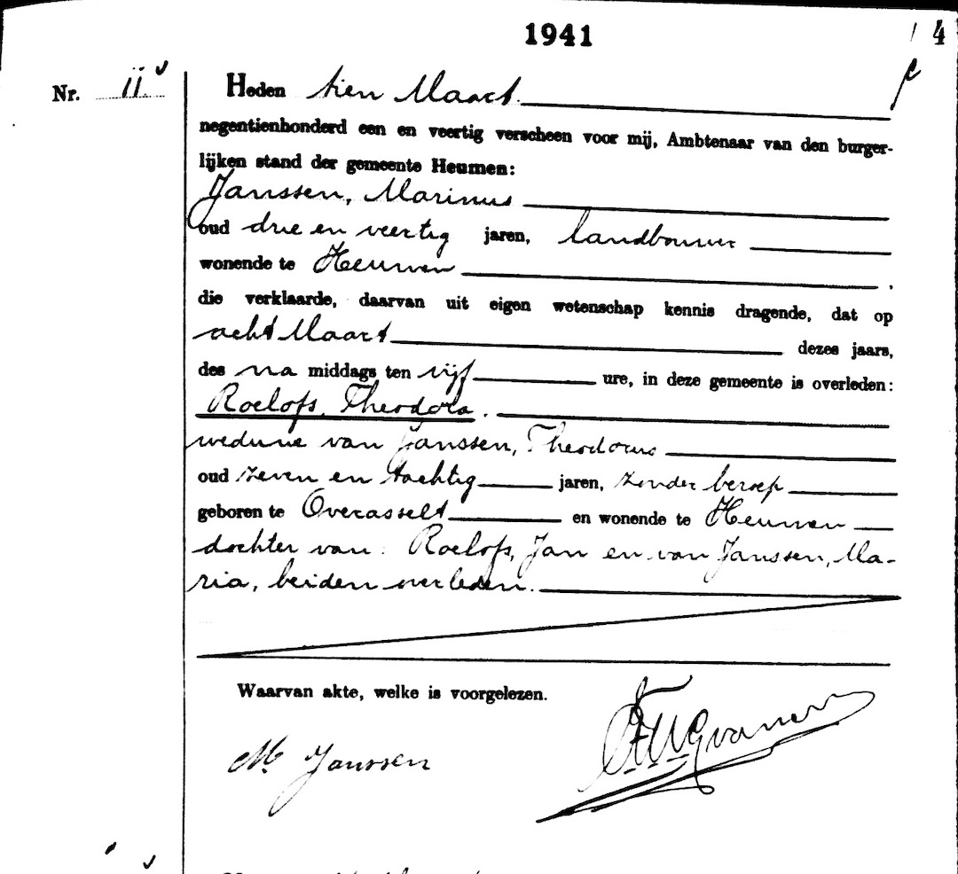 GldA, ovl. reg. Heumen 1941, akte 11