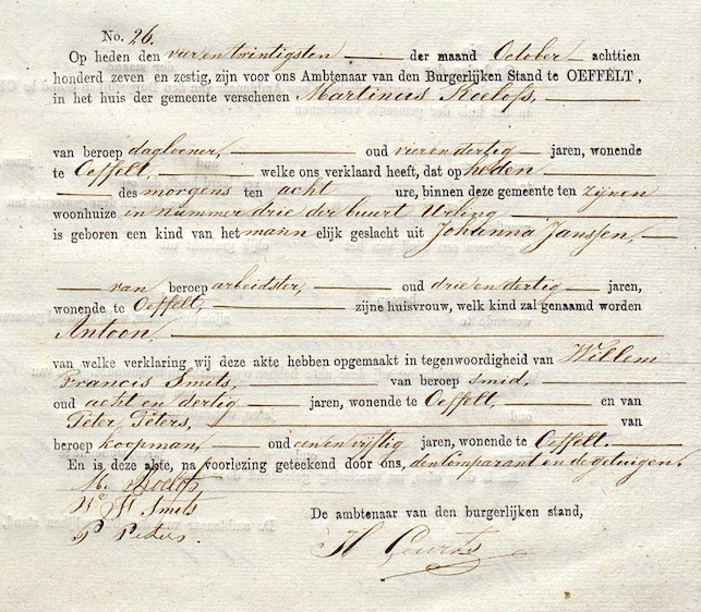 Oeffelt geb. akte 24-10-1867 nr. 26 Roelofs Antoon