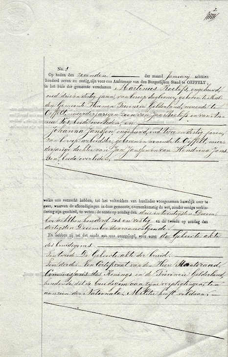 BHIC, Gem. Oeffelt, huw.reg. Oeffelt 1867, akte 1