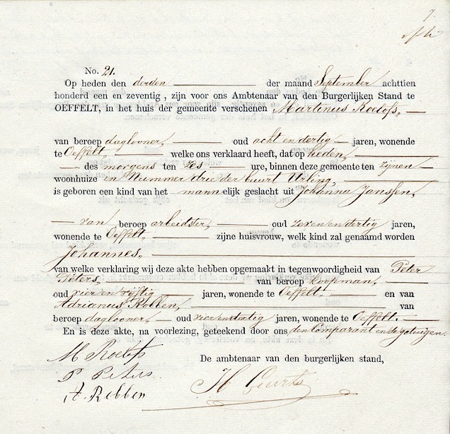 BHIC, geb.reg. Oeffelt 1871, akte 21