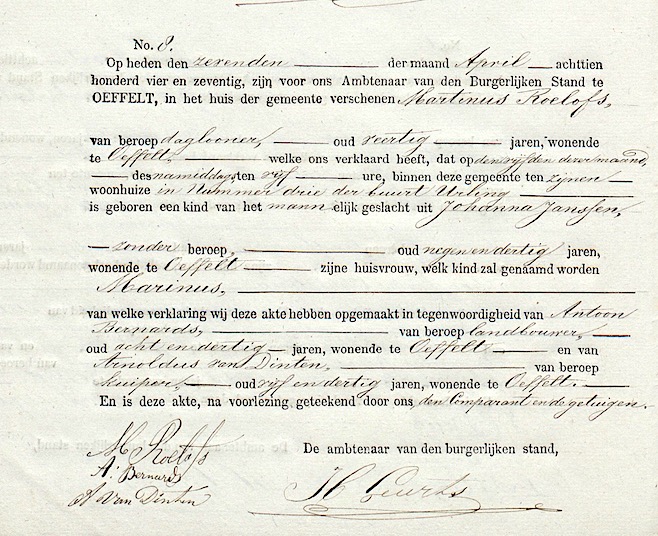 Marinus Roelofs geboorte