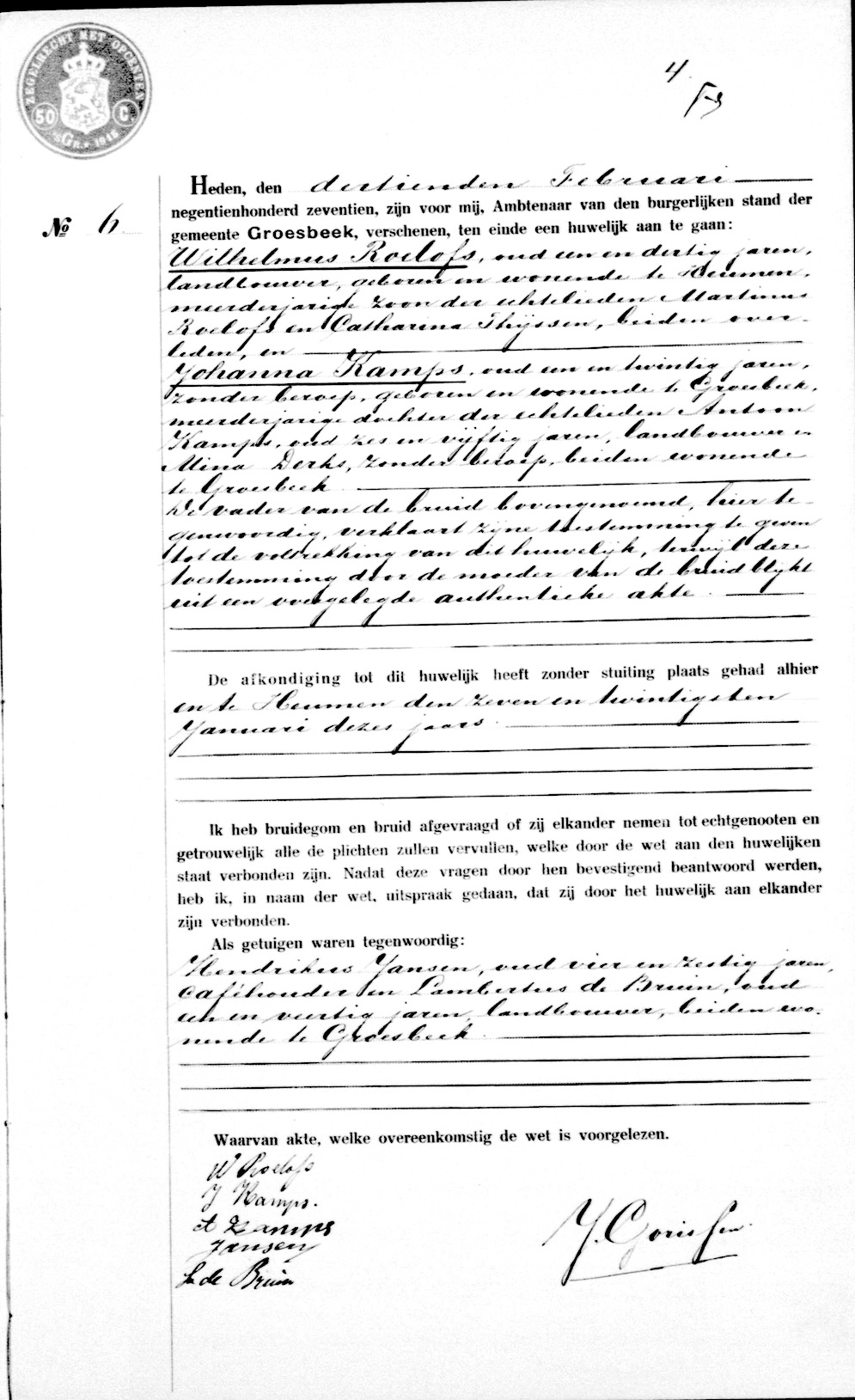 GldA, huw. reg. Groesbeek 1917 Groesbeek, akte 6