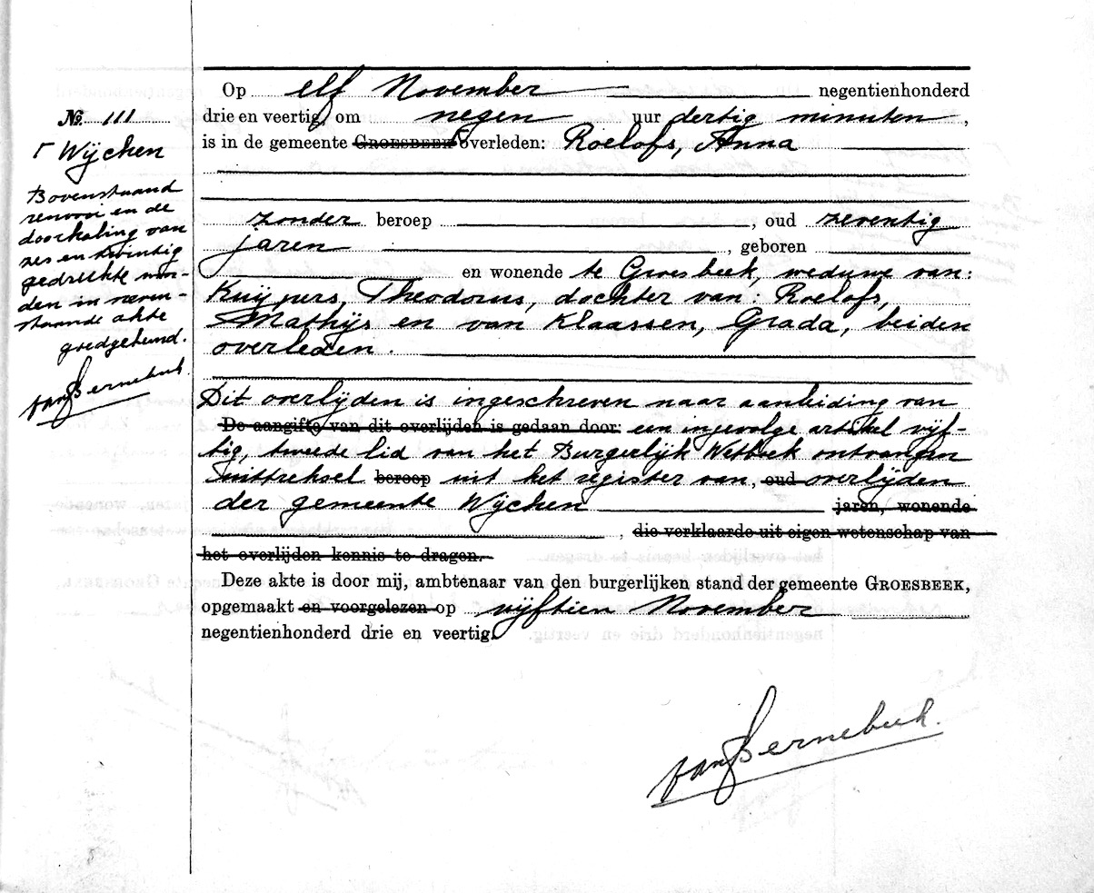 Anna Roelofs overlijden