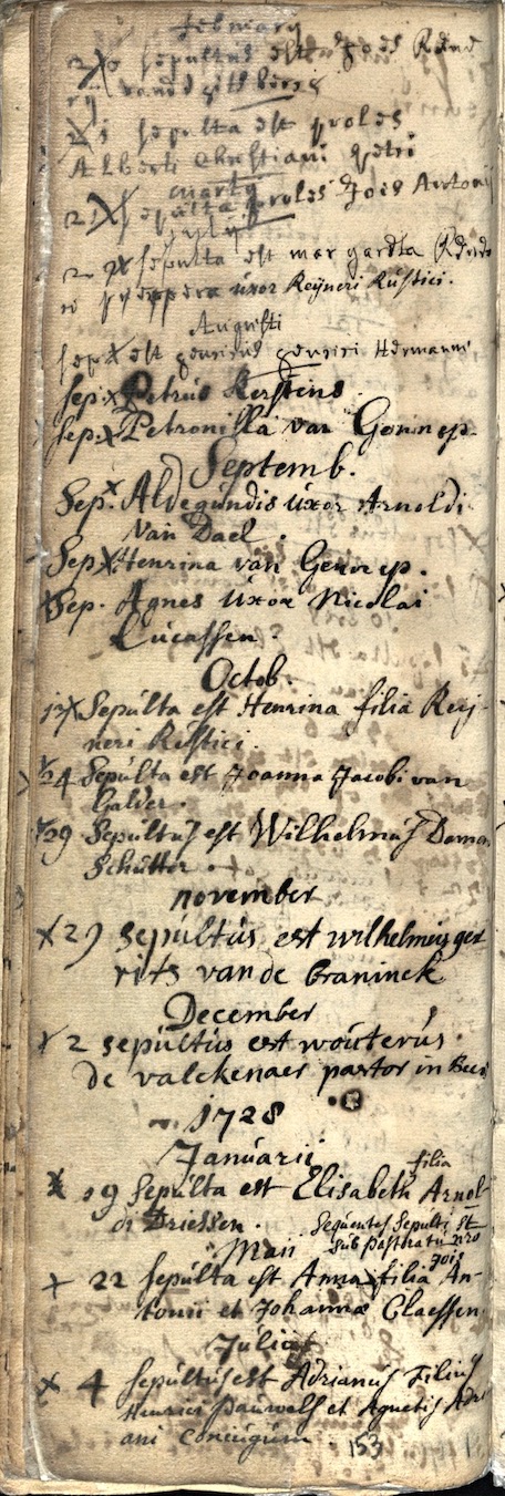 BHIC, DTB Beers begraafb.1693-1750 toegangsnr. 1426 inv. nr. 20 folio/ pag. 153