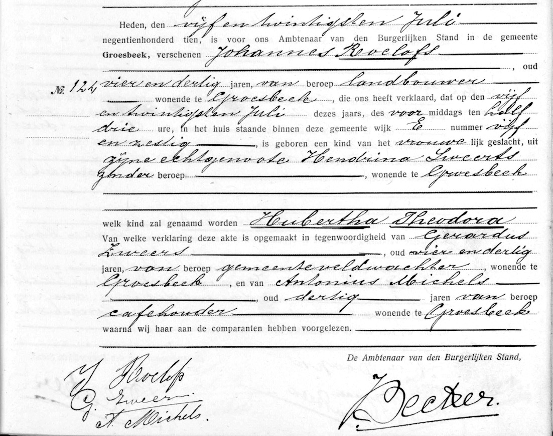 GeldA, geb. reg. Groesbeek 1910, akte 124