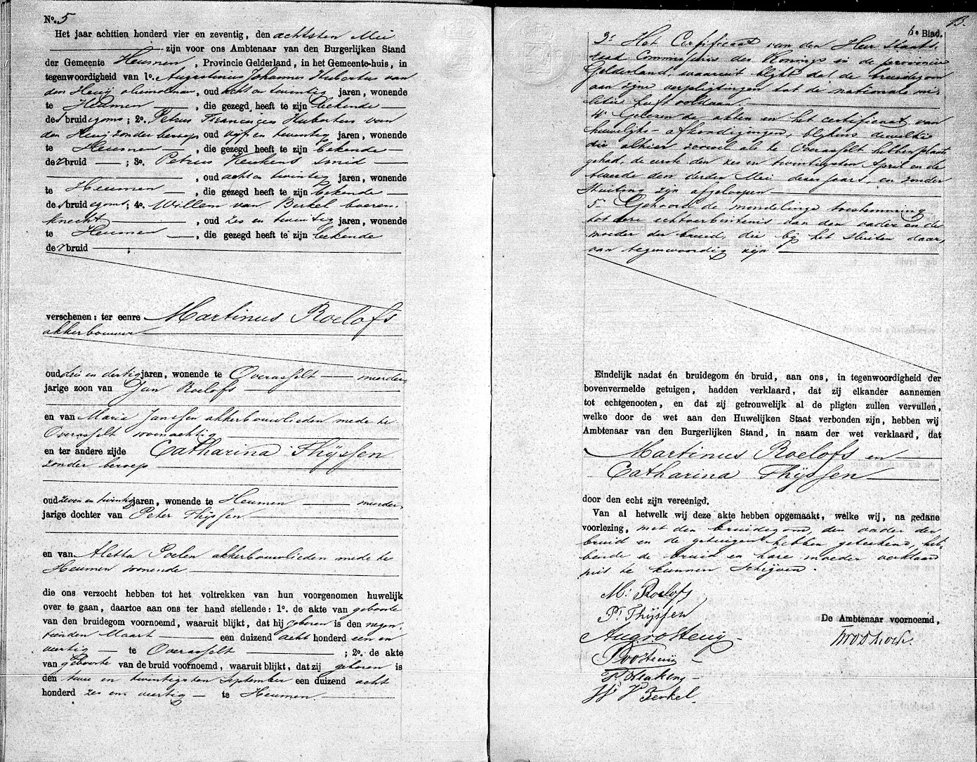 Heumen huw. 08-05-1874 Martinus Roelofs en Catharina Thijssen