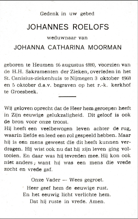 Johannes Roelofs overlijden