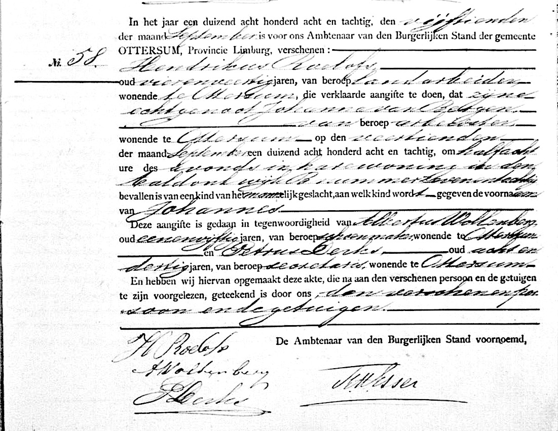 RHCL, geb. reg. Ottersum 1888, akte 58
