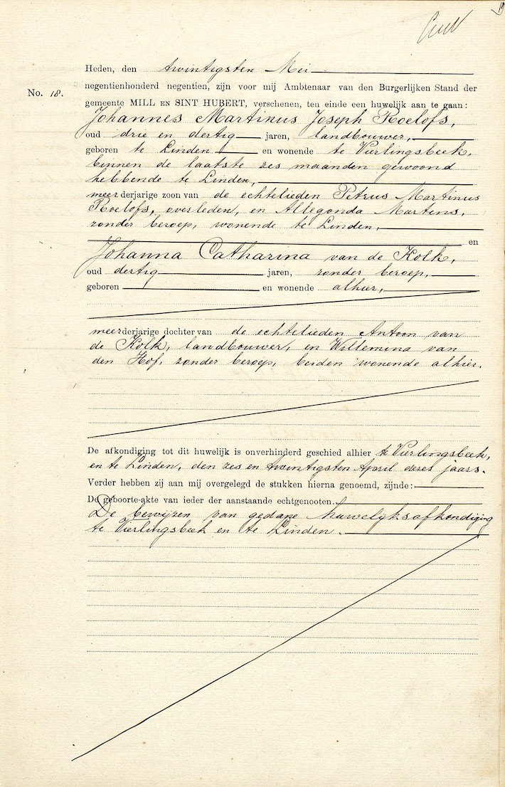 BHIC, huw. reg. Mill en Sint Hubert 1919, akte 18