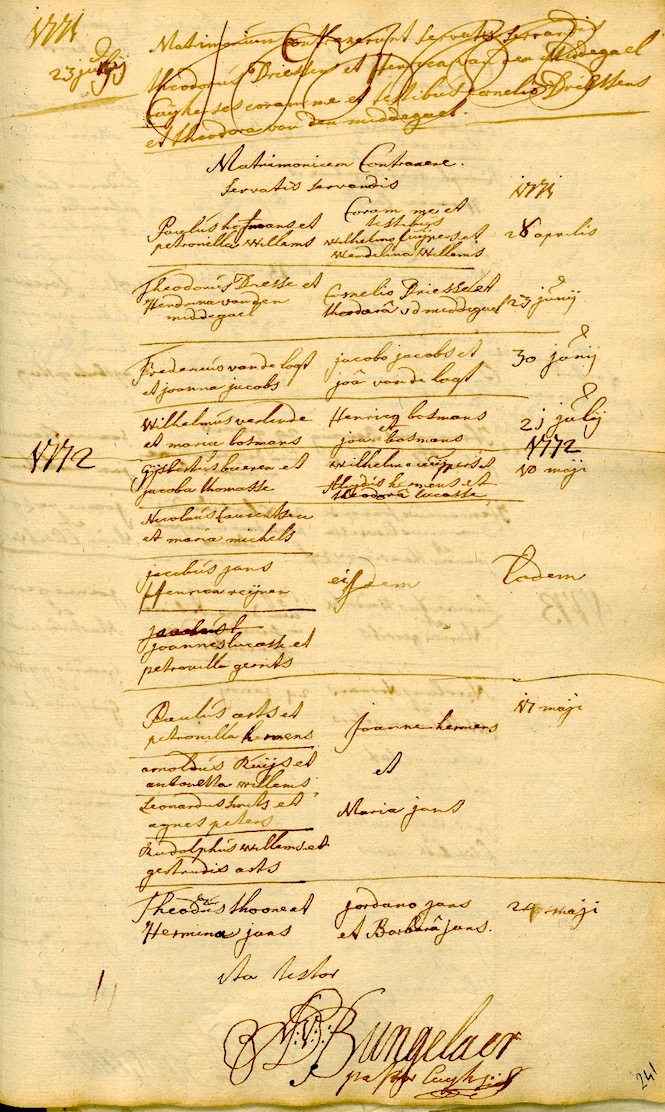 BHIC, DTB Cuijk RK trouwboek 1762-1796, inv. nr. 16 pag. 241
