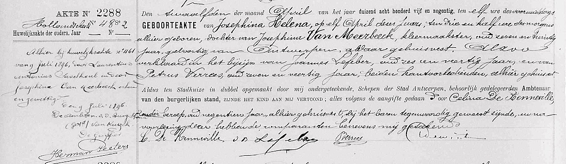 Antwerpen geb. akte 11-04-1895 Savelkoul Josephina Helena