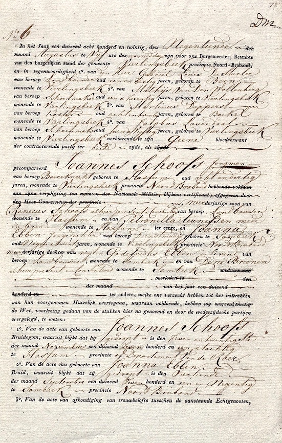 Vierlingsbeek huw. akte 19-08-1820 Joannes Schoofs - Joanna Ebben