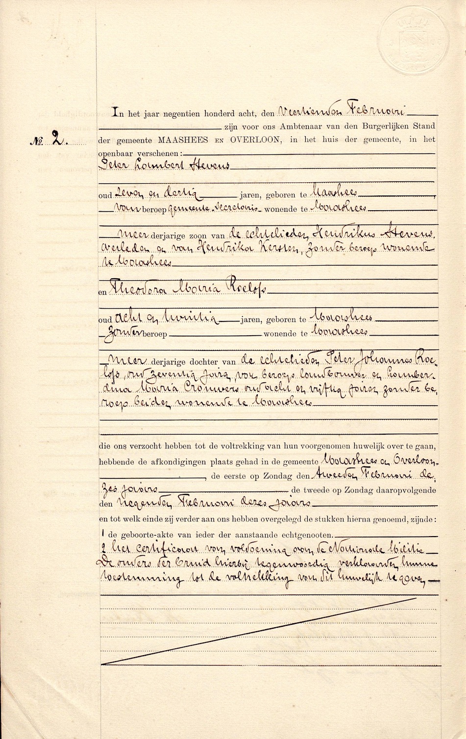 BHIC, huw. reg. Maashees en Overloon 1908, akte 2