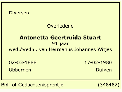 Antonetta Geertruida Stuart overlijden