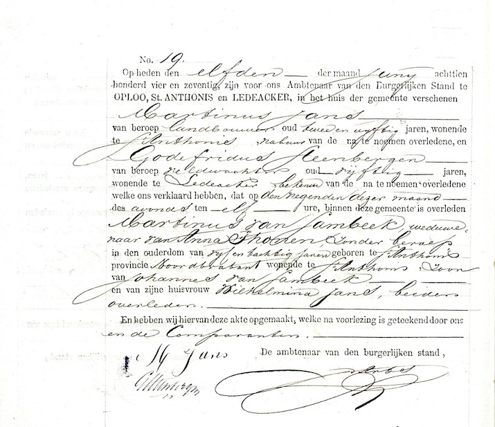 BHIC, overl. reg. Oploo, Sint Anthonis en Ledeacker 1874, akte 19