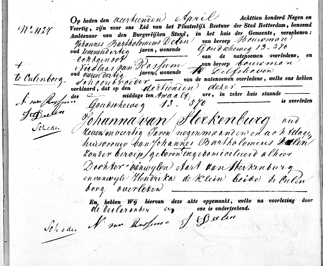 Stadsarchief Rotterdam, overl. reg. Rotterdam 1849, reg. nr. 1849B akte 1127