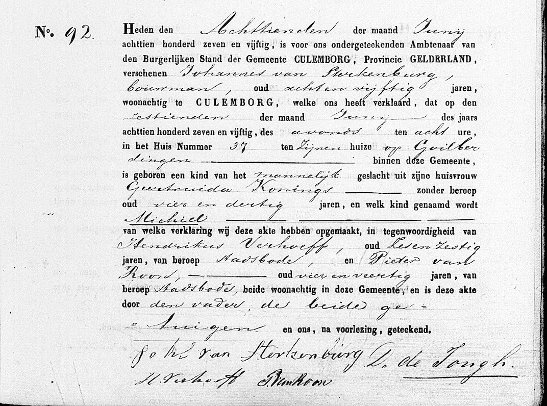GeldA, geb. reg. Culemborg 1857, akte 92