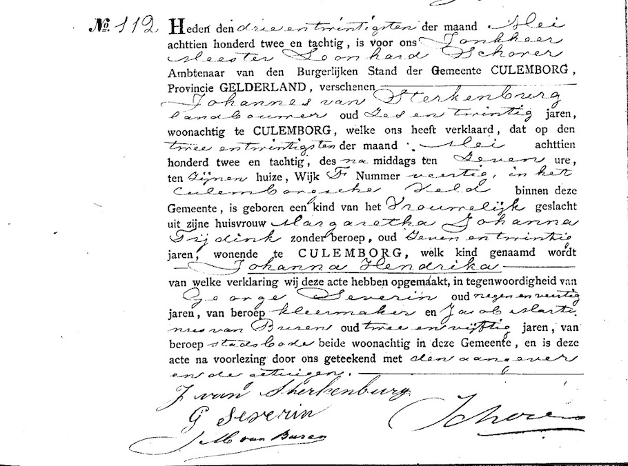 GldA, geb. reg. Culemborg 1882, akte 112