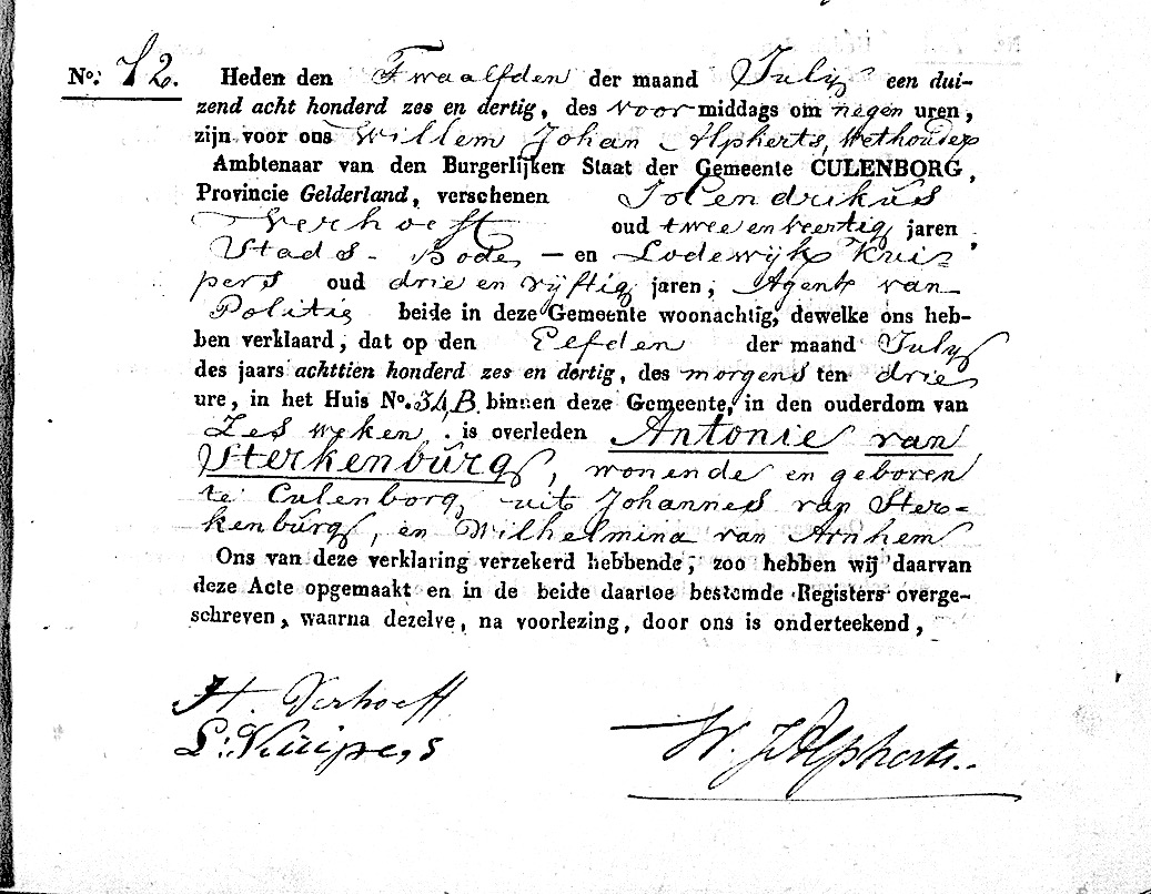 GldA, ovl. reg. Culemborg 1836, akte 72