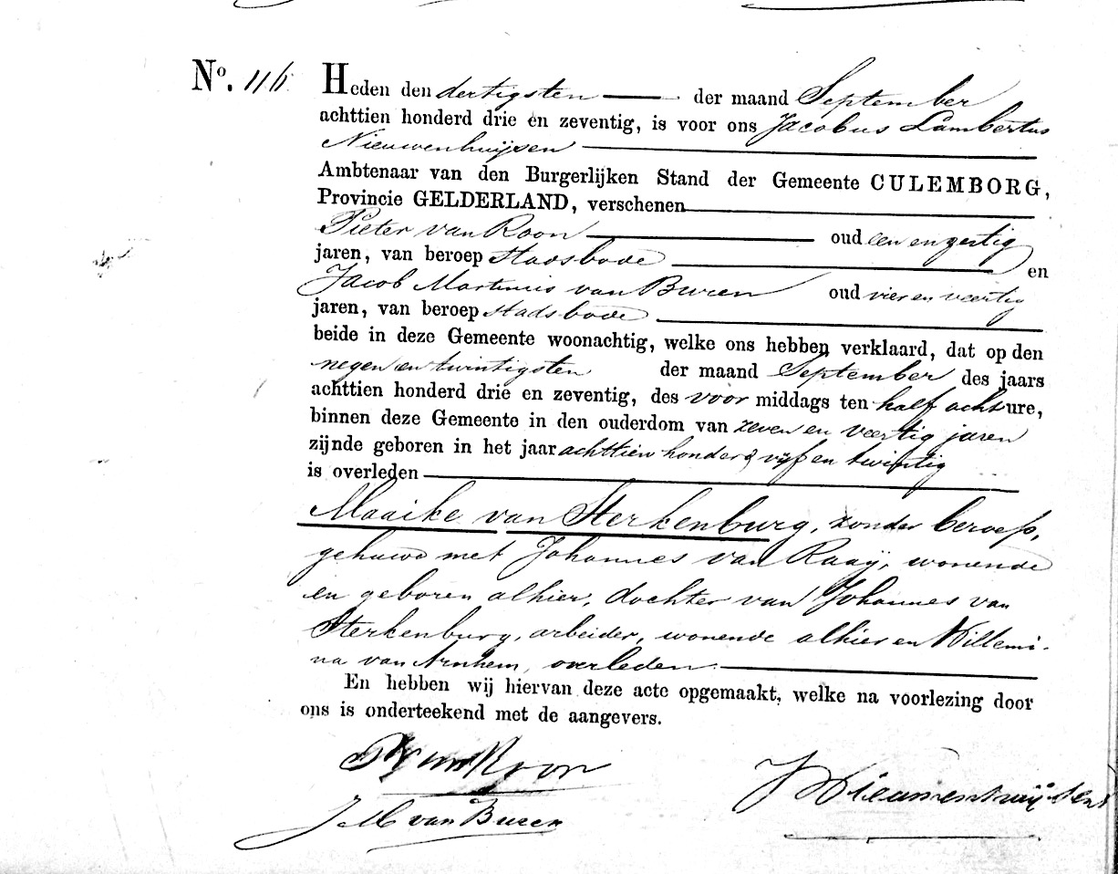 GldA, ovl. reg. Culemborg 1873, akte 116