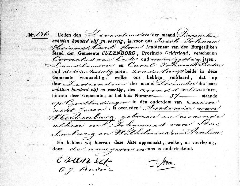 GldA, ovl. reg. Culemborg 1845, akte 136