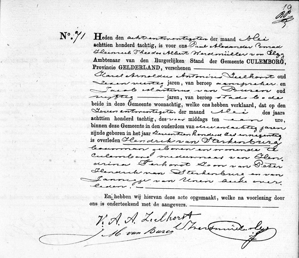 GldA, ovl. reg. Culemborg 1880, akte 71