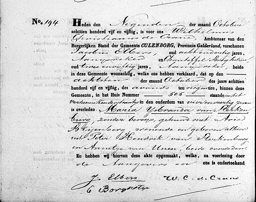 GldA, ovl. reg. Culemborg 1855, akte 194