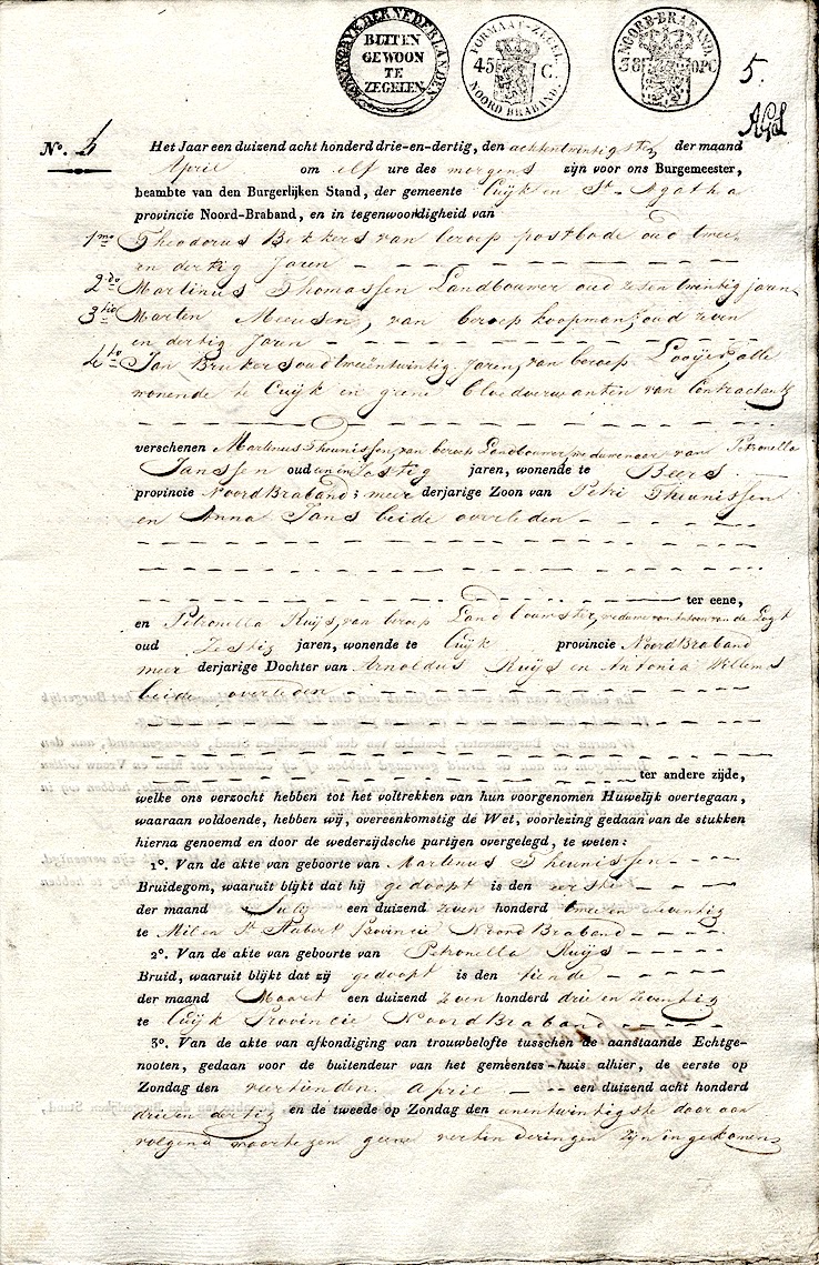 BHIC, huw. reg. Cuijk en Sint Agatha 1833, akte 4