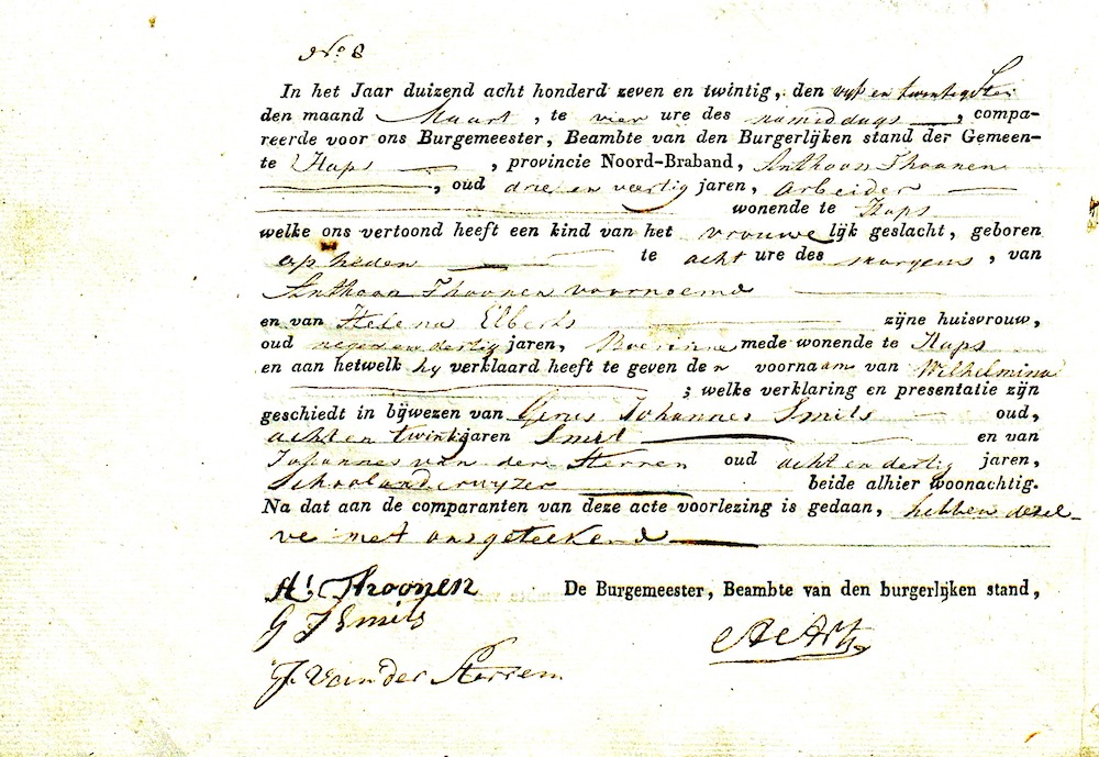 Wilhelmina Thoonen geboorte