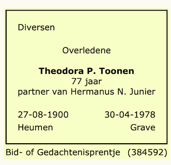 Theodora Petronella Toonen overlijden