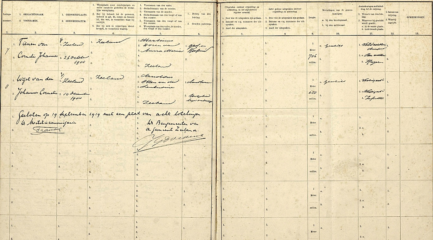 Gem. Zeeland dienstplicgtreg. 1920-1930 Cornelis Johannes van Tienen