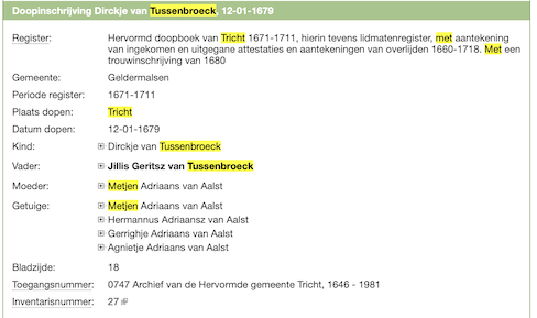 Dirckje van Tussenbroek doop